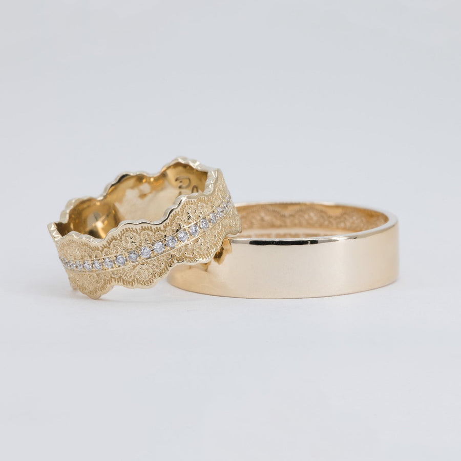 Celebrate your connection with matching couples’ wedding bands, thoughtfully designed to reflect unity and shared style. Each pair is crafted to complement one another—blending timeless elegance with meaningful symmetry for a perfect expression of your bond.