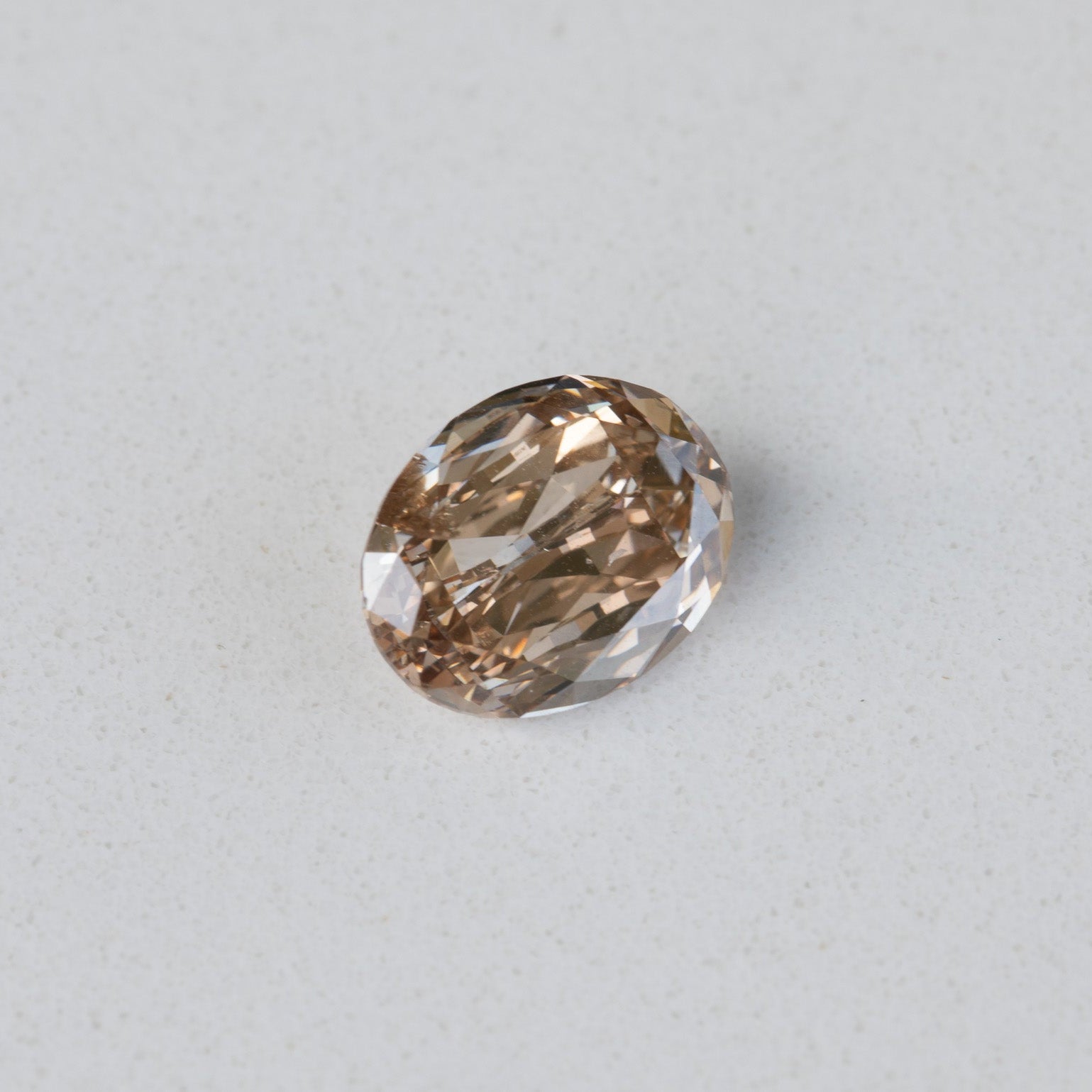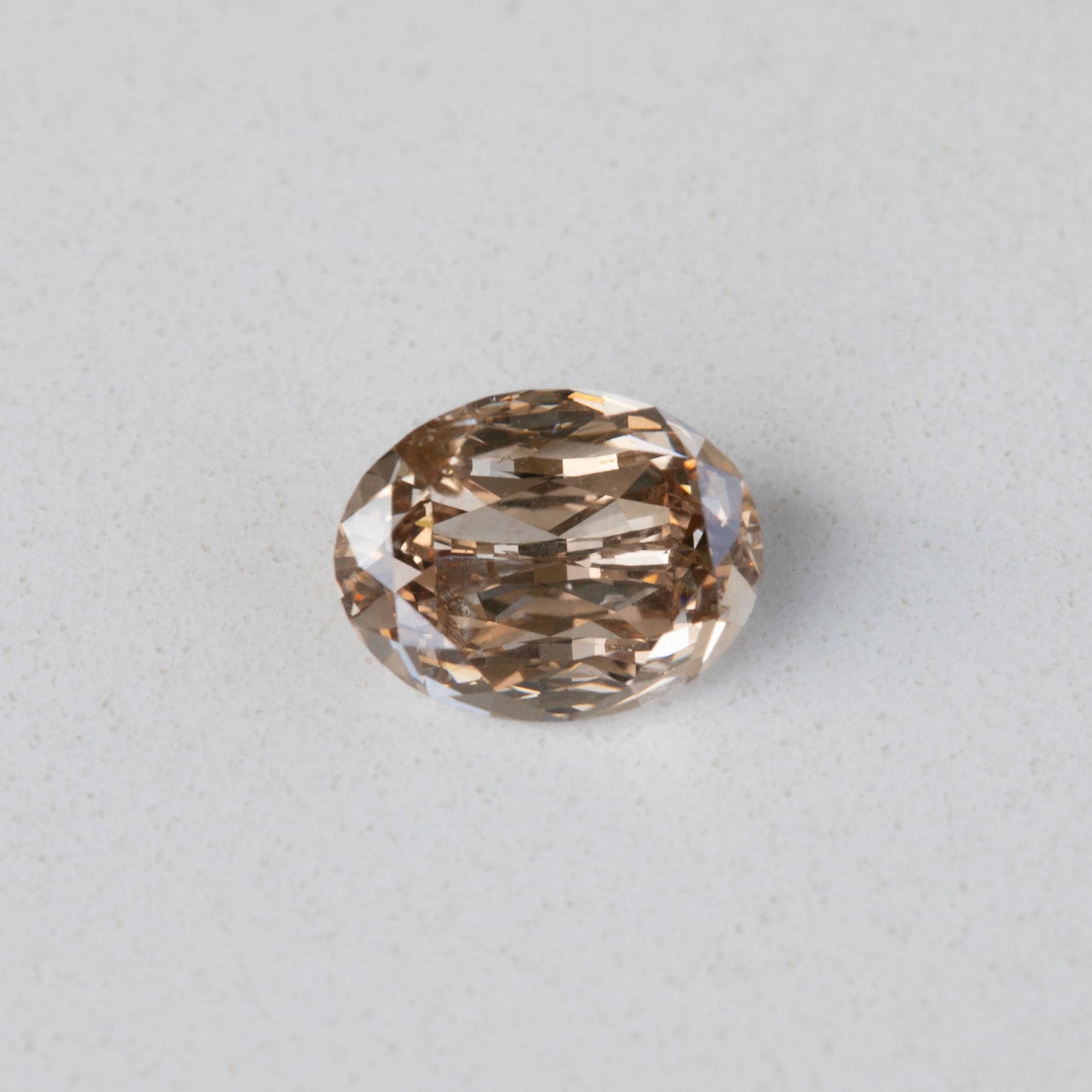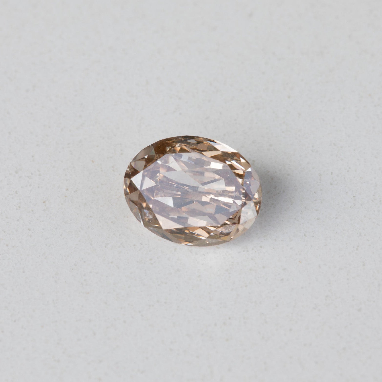This is a GIA certified (2235488400) natural diamond graded Fancy Orange-Brown in color and I2 in clarity and measuring 8.72mm x 6.76mm x 3.15mm.
