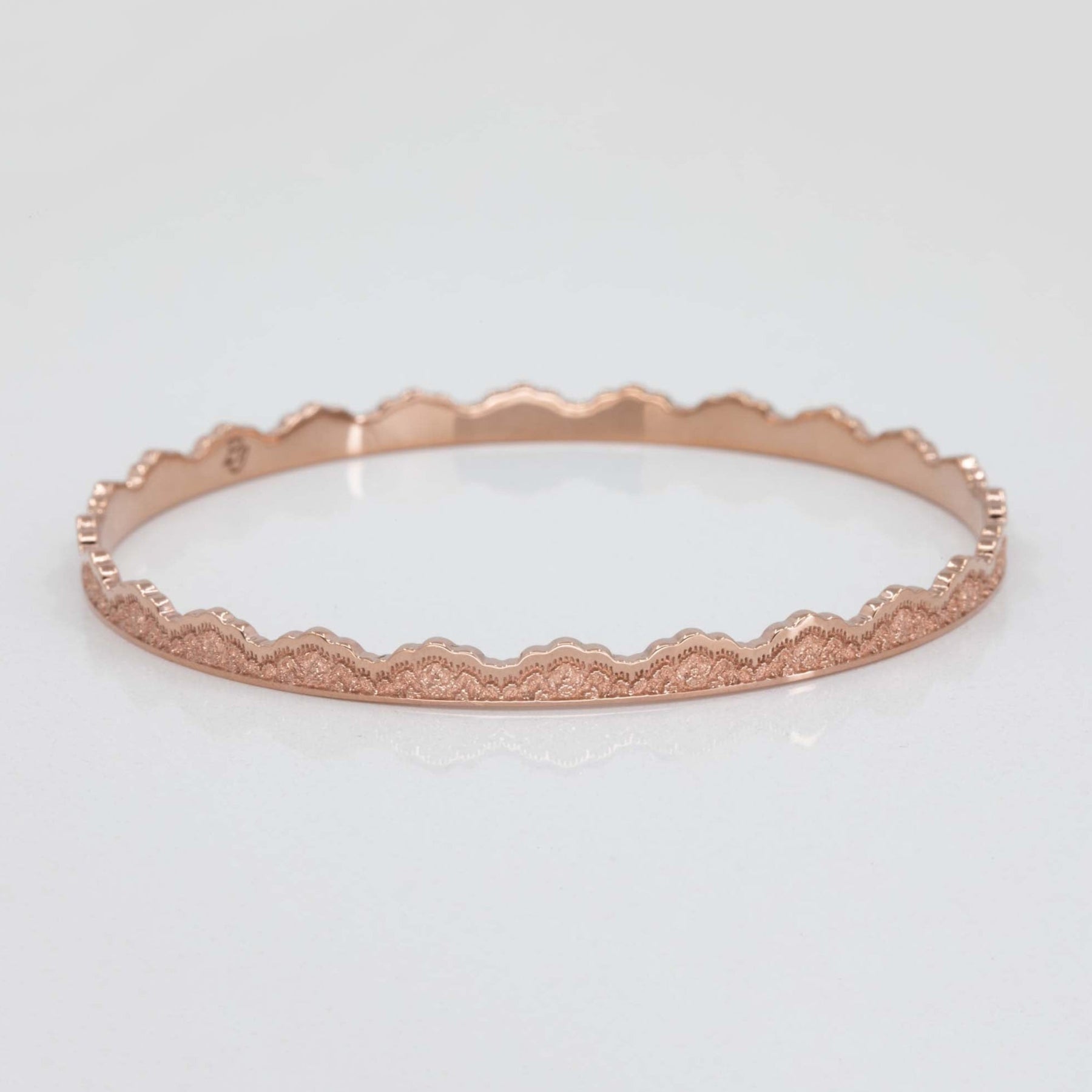 The bangle measures 4.3 mm wide from scallop to scallop and 1.5 mm thick.