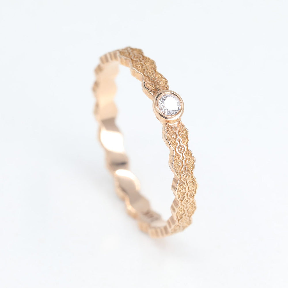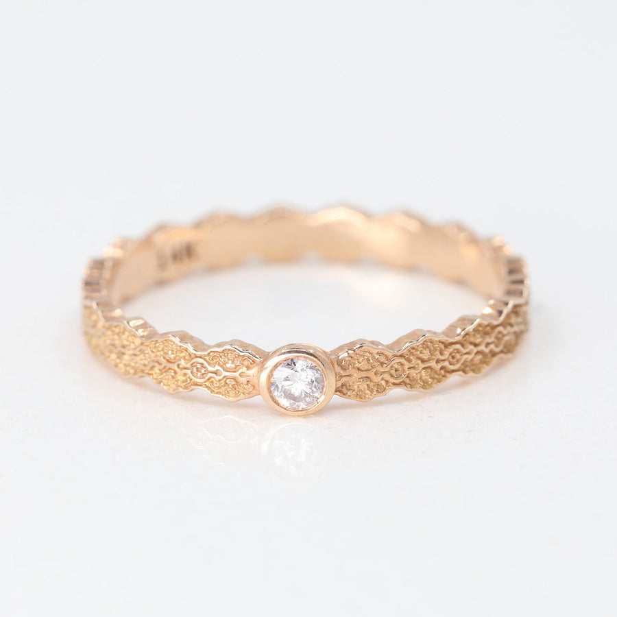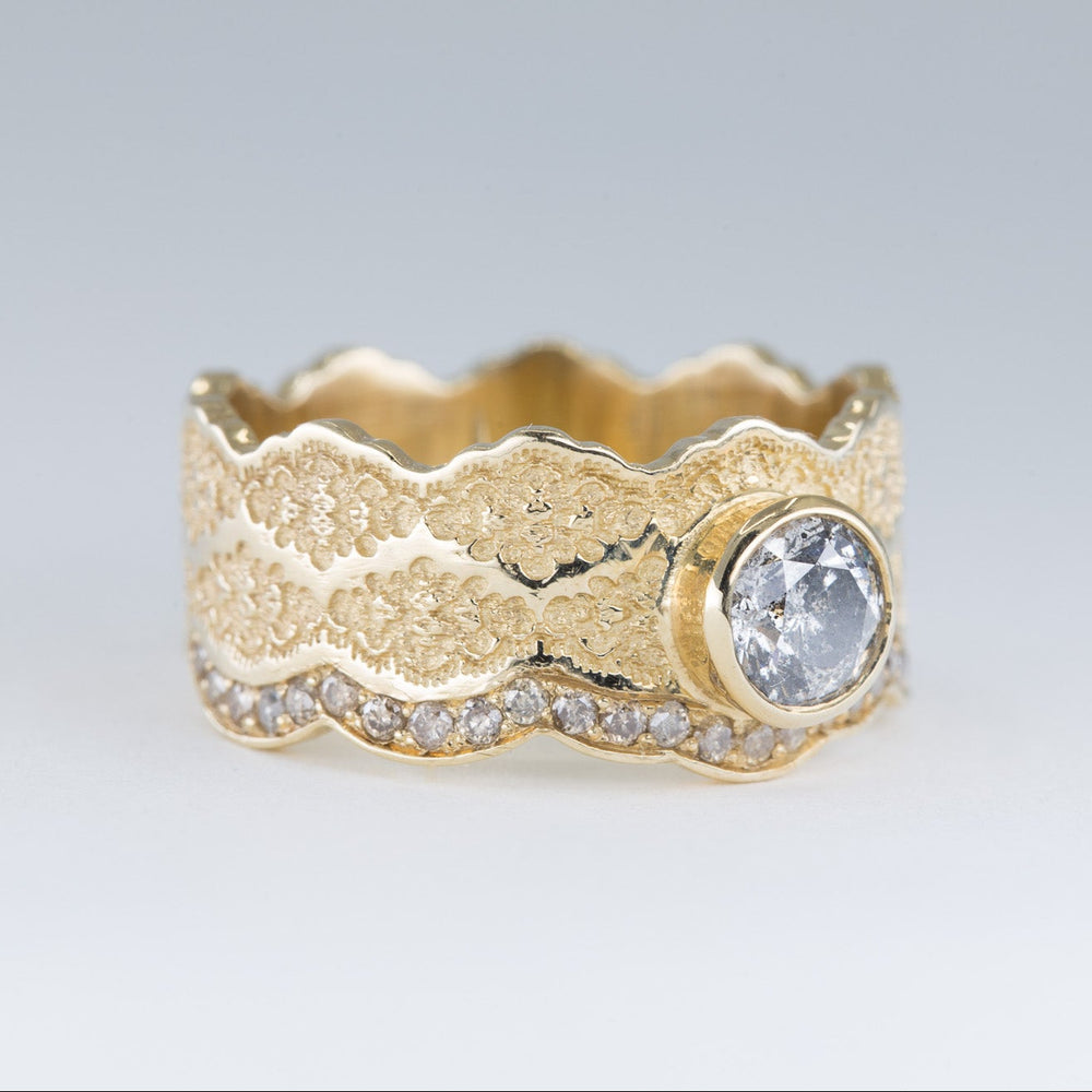 Whether adorned with diamonds or colored gemstones, these rings evoke a sense of heirloom beauty—perfect for those who cherish tradition with a unique twist. Ideal for vintage lovers or those seeking a ring as intricate and meaningful as their love story, our lace-inspired collection blends old-world charm with modern craftsmanship.