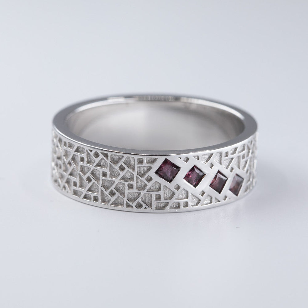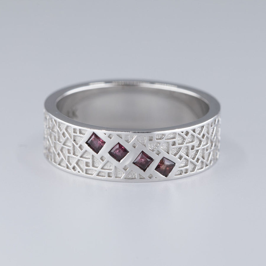 Atlas Men's Wedding Band with Princess Rubies - Size 7.5