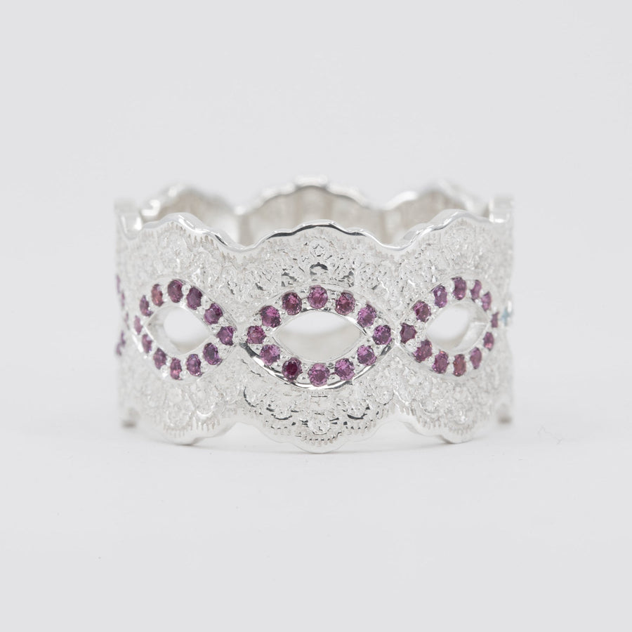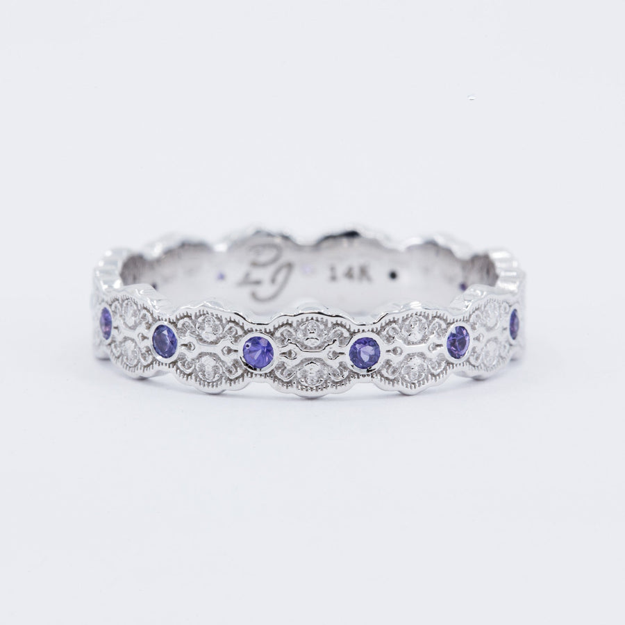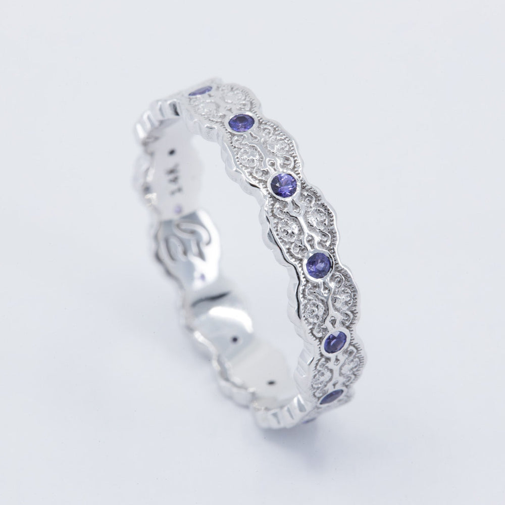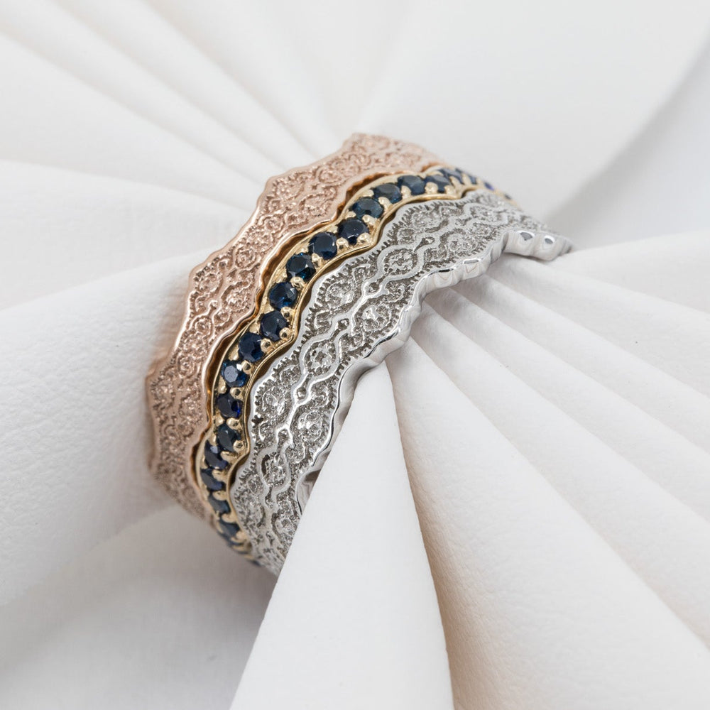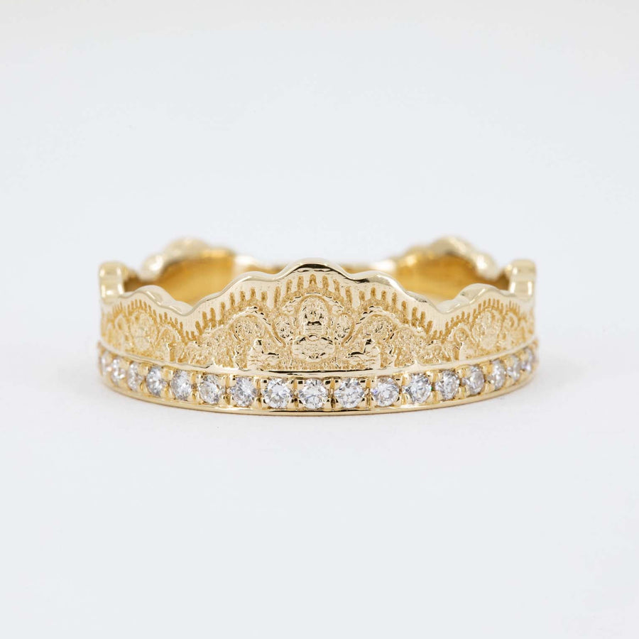 Celebrate your forever with our lace-inspired wedding bands, crafted with delicate details that echo vintage lace patterns. These romantic designs add a timeless, elegant touch—perfect for stacking or wearing solo.